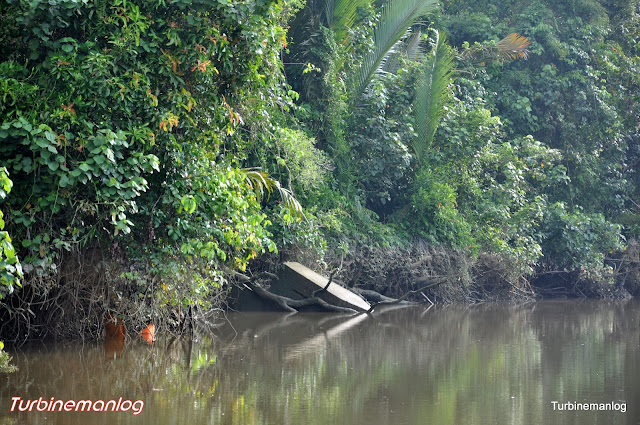 Sungai Belat Pillbox is half sunken into Sg Belat
